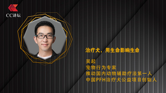 由中国科学院大学校友会、北京君和创新公益基金会联合主办,主题为“和而不同,思想无界”的CC讲坛第58期演讲2024年3月3日在中国科学院大学(北京玉泉路校区)礼堂举行。来自宠物行为专家、中国PFH治疗犬公益项目创始人吴起出席,并以《治疗犬 用生命影响生命》为题发表演讲。