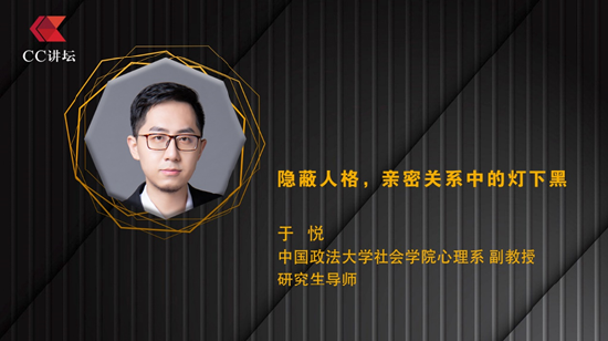 大家好,我是于悦,来自中国政法大学社会学院心理系。博士毕业于中国科学院心理研究所,我的学籍曾经也是隶属于国科大的。所以这次很高兴能够以校友的身份来到这儿来分享我的研究,在此特别感谢CC讲坛的邀请。